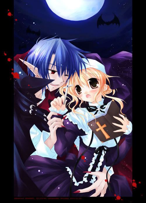 exista o lume plina de neprevazut,tristete si durere.dar ca sa ingreuneze situatia,mai exita si o creatura puternica,ea,inspaimantatoare si sangeroasa!in folclorul mahiar,era numit "vampir" iar cu timpul a evenit denumiea lo pe tot globul. In manastirea Sf.Ana era o zi insoita. izabella:in farsit putina lumina!! saanta:bella,ai trminat deja treaba? izabella:da! samanta:ce bine!acum putem chiuli impreuna oaptea asta! pe fata izabellei se ivi putina frica. izabella:esti sigura? samanta:da!hai te roooog!doar suntem prietene! izabella:bine,dar tu ii explici asta sorei kate! samanta:mersi muult! si o imbratisa. samanta:o si,bella! se intoarcce. izabella:ce e? samanta:sigur vi? izabella:jur pe numele sf.ana ca voi eni cu tine sa ma bag in bucluc!!! spune ea solemn. samanta:heei! sora kate:fetelor!icetati!sunteti calugarite!! izabella:ne pare rau! sora kate:sa nu se mai intample!! si pleaca. samanta:a fost cat pe ce! izabella aproba.ea era o fata draguta cu parul blond,putin timida.ii placea sa stea afara si sa studieze. samanta pe de alta parte,e o roscata cu parul deobicei valvoi vorbareata,dornica sa intre in probleme. cele 2 erau exact opusul lor. se intuneca.izabella veni in mana cu o biblie si o cruce. samanta:izabella,ce te-a apucat? izabella:pai le-am luat pentru orice eventualitate! samanta:esti prea sperioasa.ce crezi?ca ne va ataca un vampir?? izabella chiar era speriata. au mers prin intuneric cam 2 km pana samanta obosi. samanta:am obosit! izabella:prost moment!! vampirul:din contra!v-ati ales momentul perfect! cele 2 incremenesc. cand se intorc,vad unbaiat cu parul albastru si ochii rosi cu urechi lungi. samanta lesina. izabella;samata!!samanta!emi,nu ma lasa singura! si incepu a tremure.baiatul rade si se apropie amenintator de ea,prinzand-o cu mana de abdomen si ridicand-o. izabella tipa i coate biblia si incearca sa zica cateva rugaciuni dar vocea ii tremua toata. baiatul:nu te mai oteni degeaba!crezi ca niste siple rugaciuni amarate ma vor ucide?